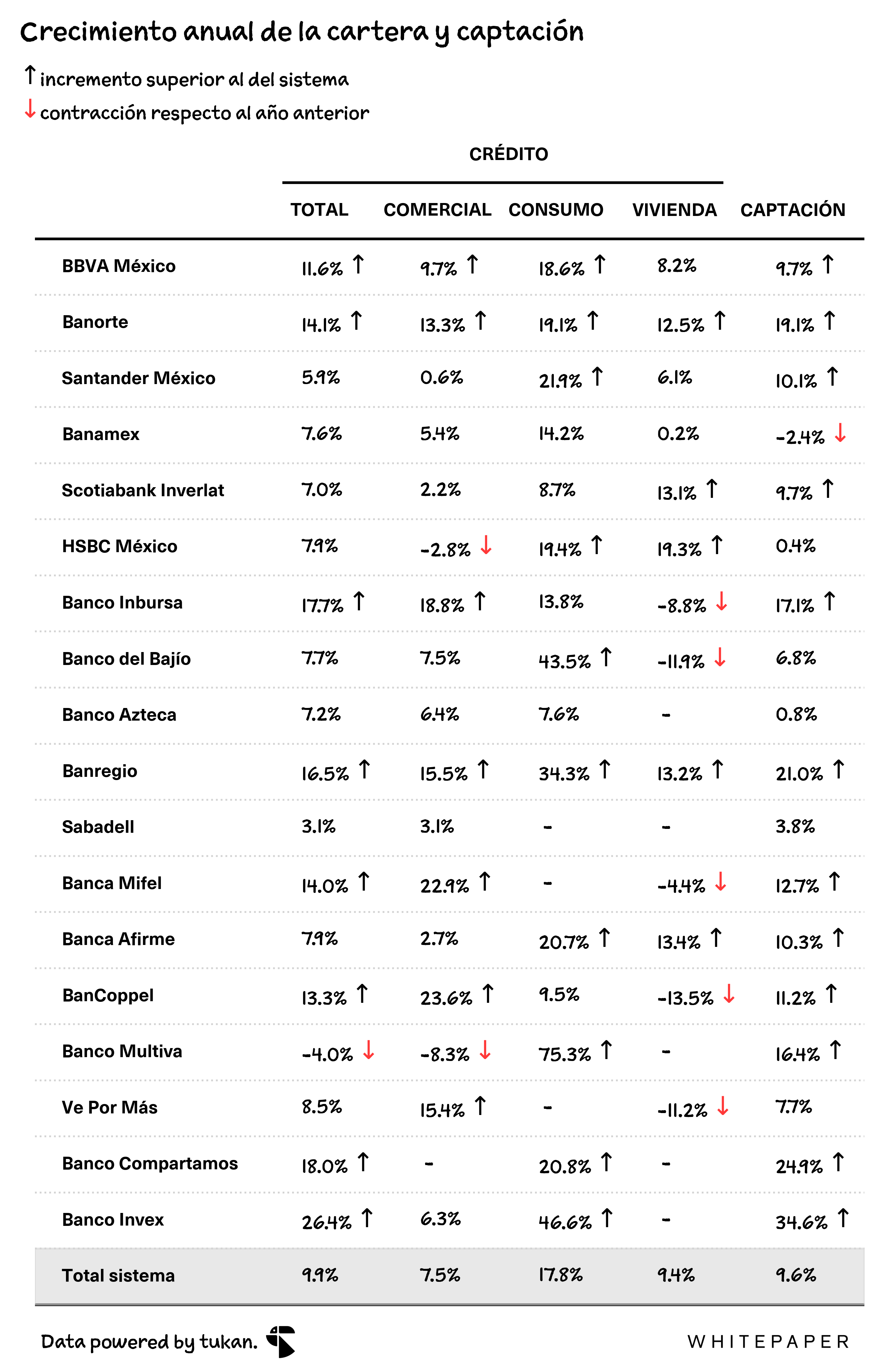 Esta semana la CNBV actualizó la información para la banca mexicana, acá algunos de los datos que más nos llamaron la atención:
