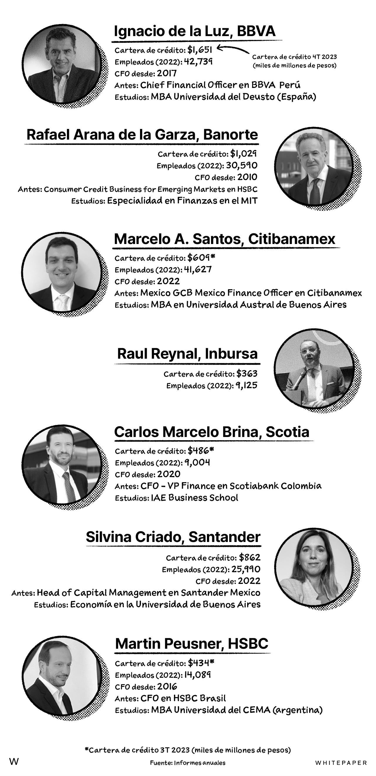 ¿Cómo fue la trayectoria de los CFOs del G-7? En este país, los siete bancos más grandes acaparan más del 80% del total de la cartera de crédito de la banca múltiple y juntos emplean algo así como 180,000 personas. Tienen miles y miles de sucursales y de cajeros, y sus portafolios de productos suelen ser los más amplios en el mercado.