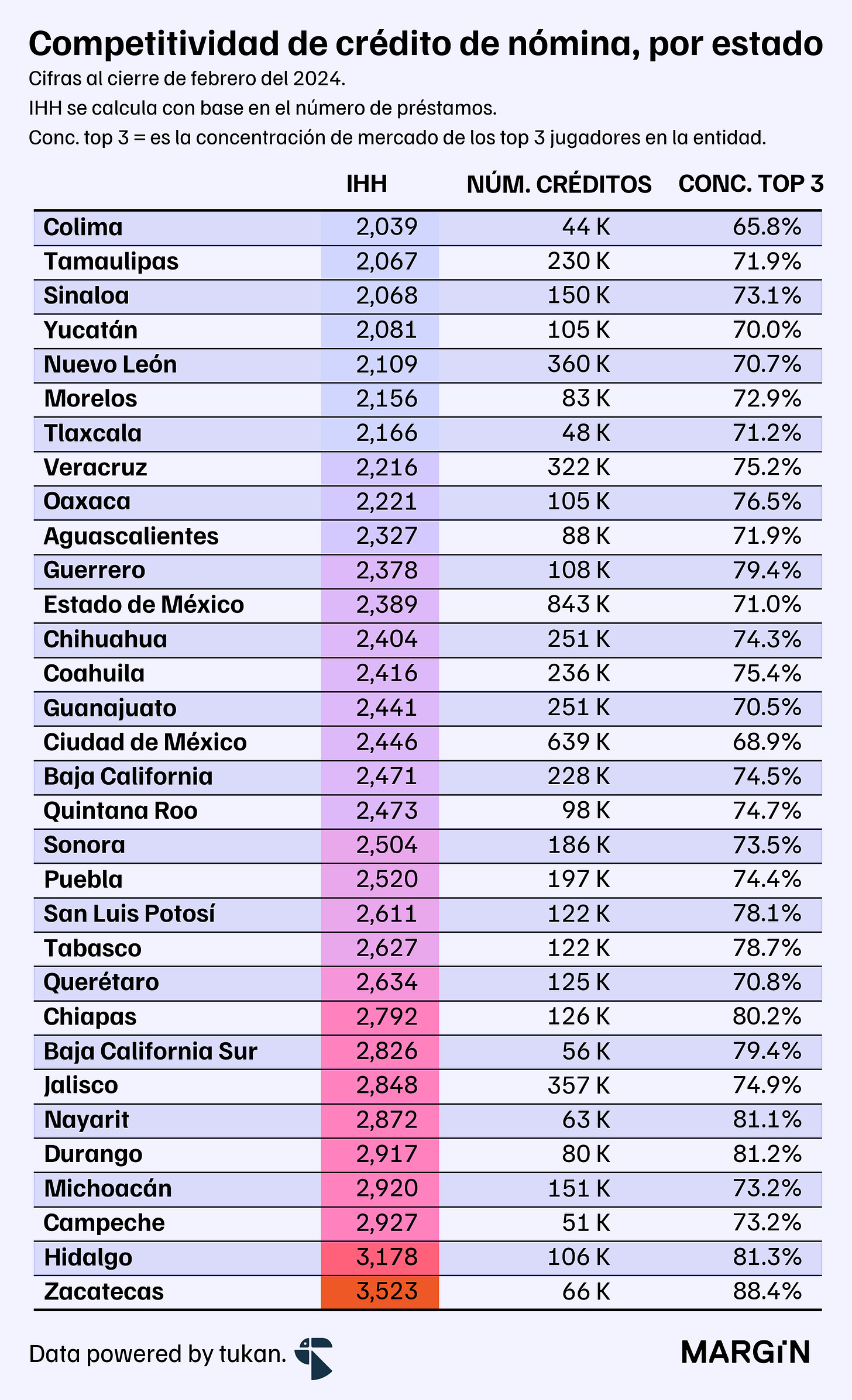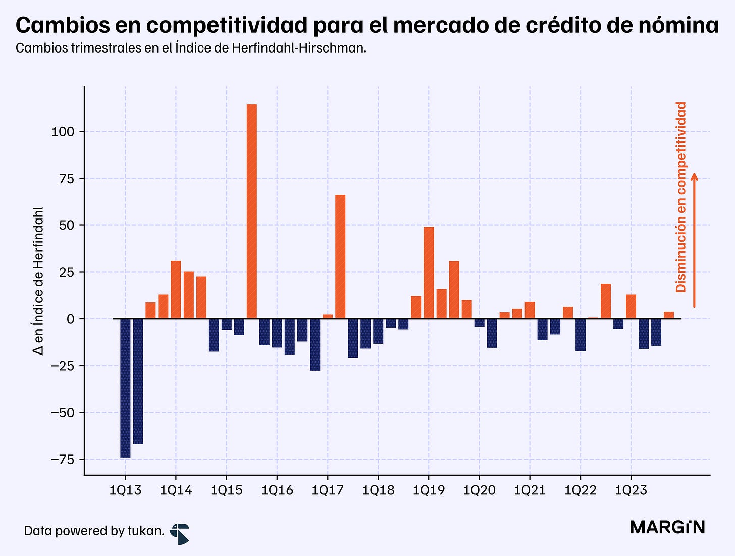 Luego está el crédito de nómina, el producto con menor competitividad dentro del sistema bancario (con base en el IHH).