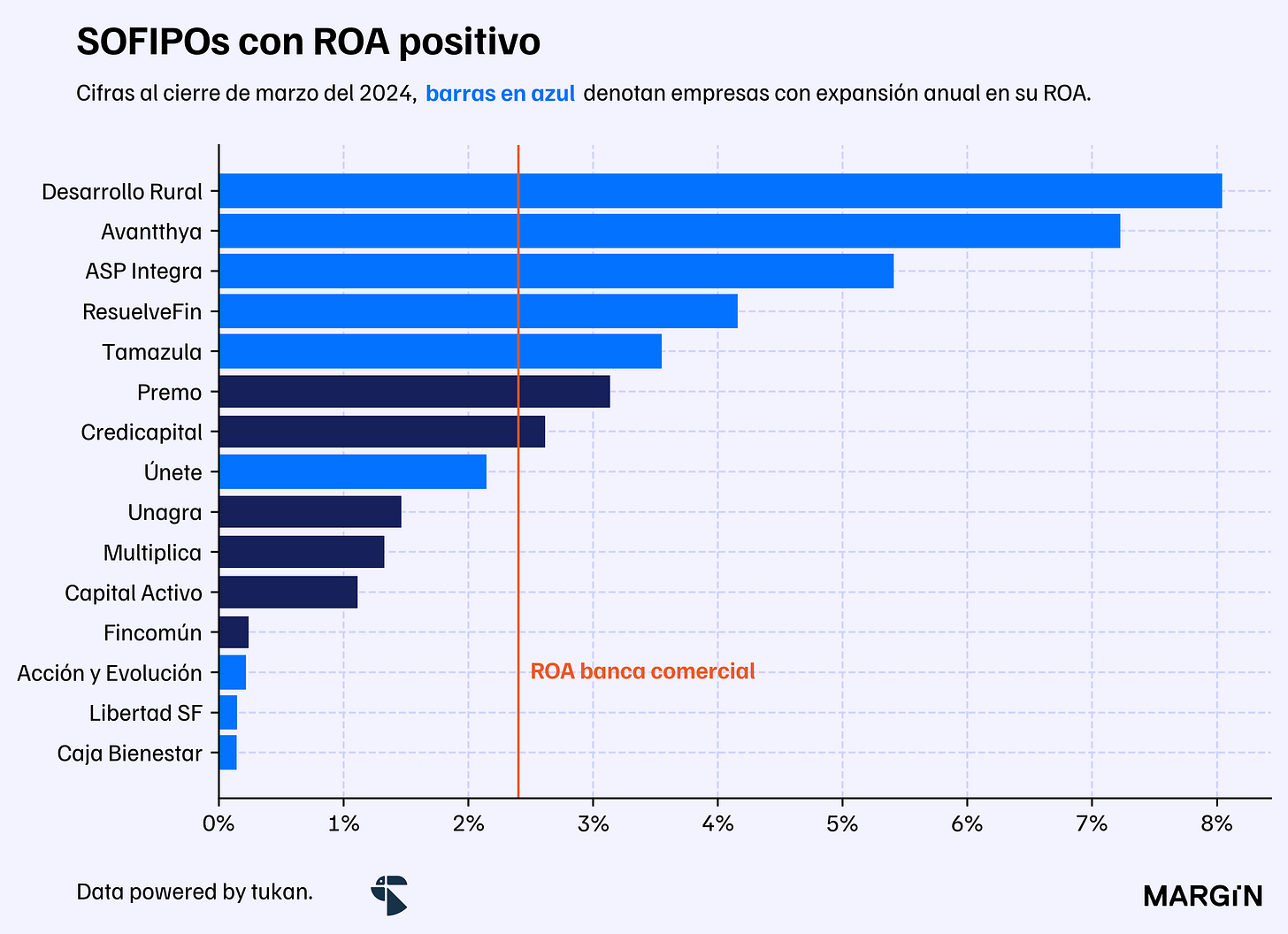 De las 15 instituciones que reportaron resultados positivos en estos últimos 12 meses, 7 habrían reportado un ROA superior al de la banca comercial en agregado (de 2.04%) y 9 estarían registrando expansiones en su índice de rentabilidad con respecto al año anterior.