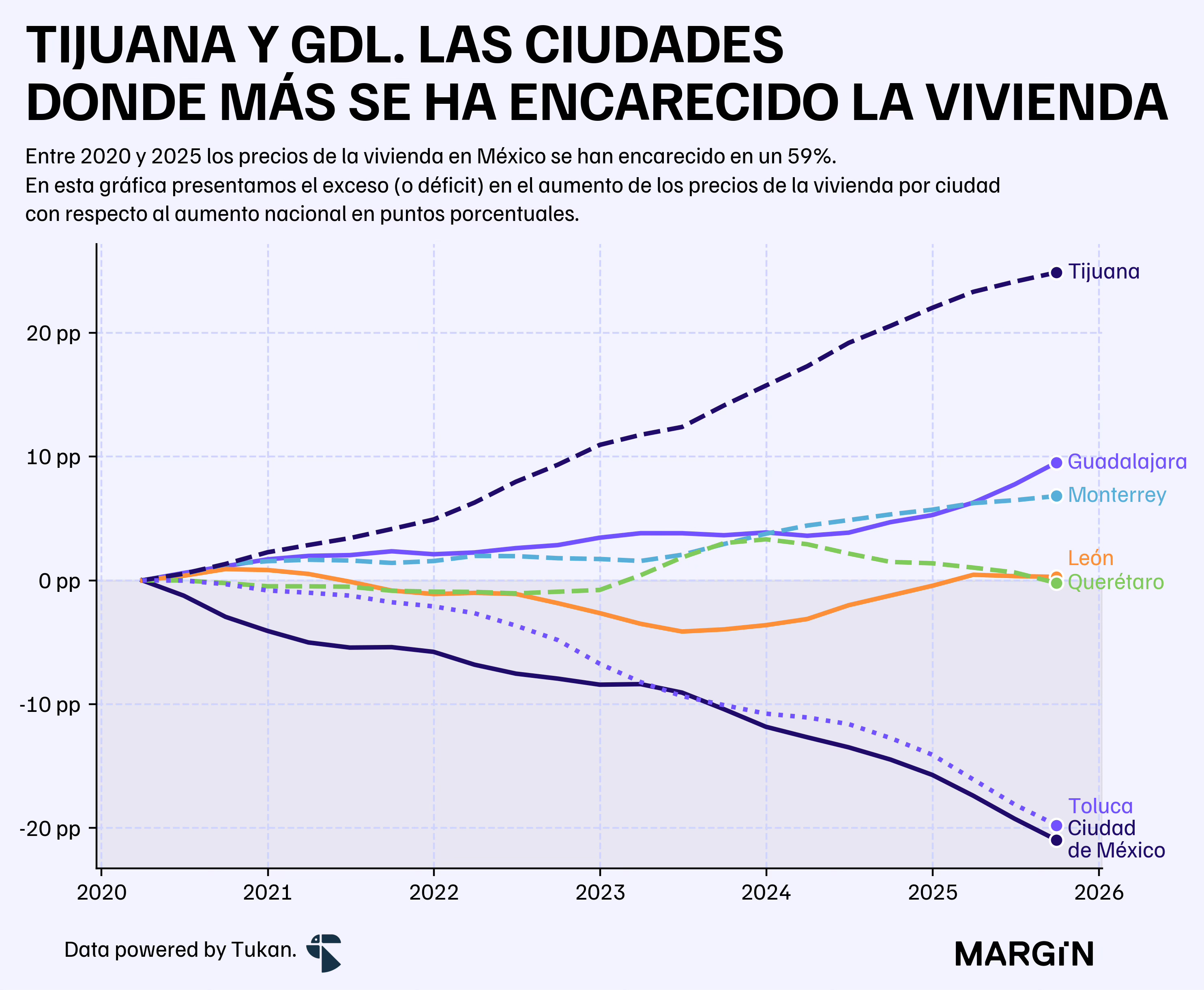 Según los índices del instituto, la zona metropolitana de Tijuana ha sido la que estaría presentando los mayores incrementos en el precio de sus inmuebles con respecto a la media nacional. Reportando un encarecimiento acumulado de 84% en los últimos 6 años.