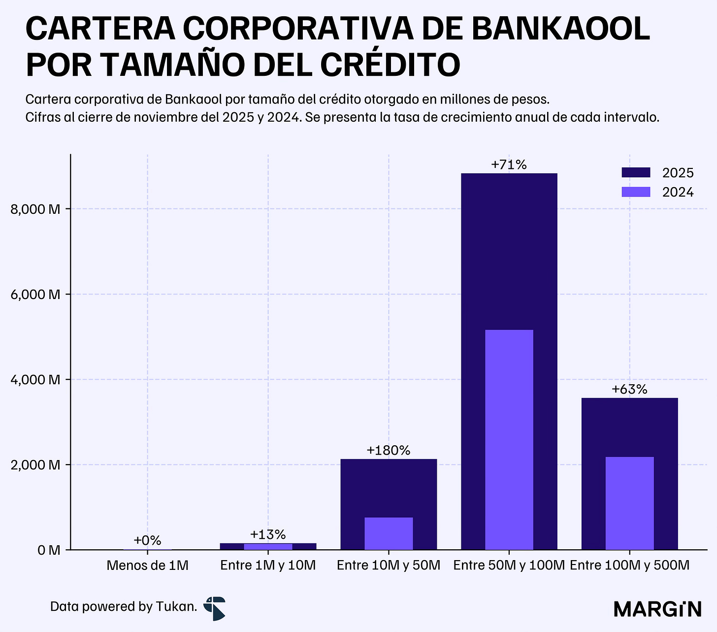 Más de la mitad de su cartera está colocada en créditos de entre $50 y $100 millones de pesos, con crecimiento importante en estados como Jalisco y la Ciudad de México.