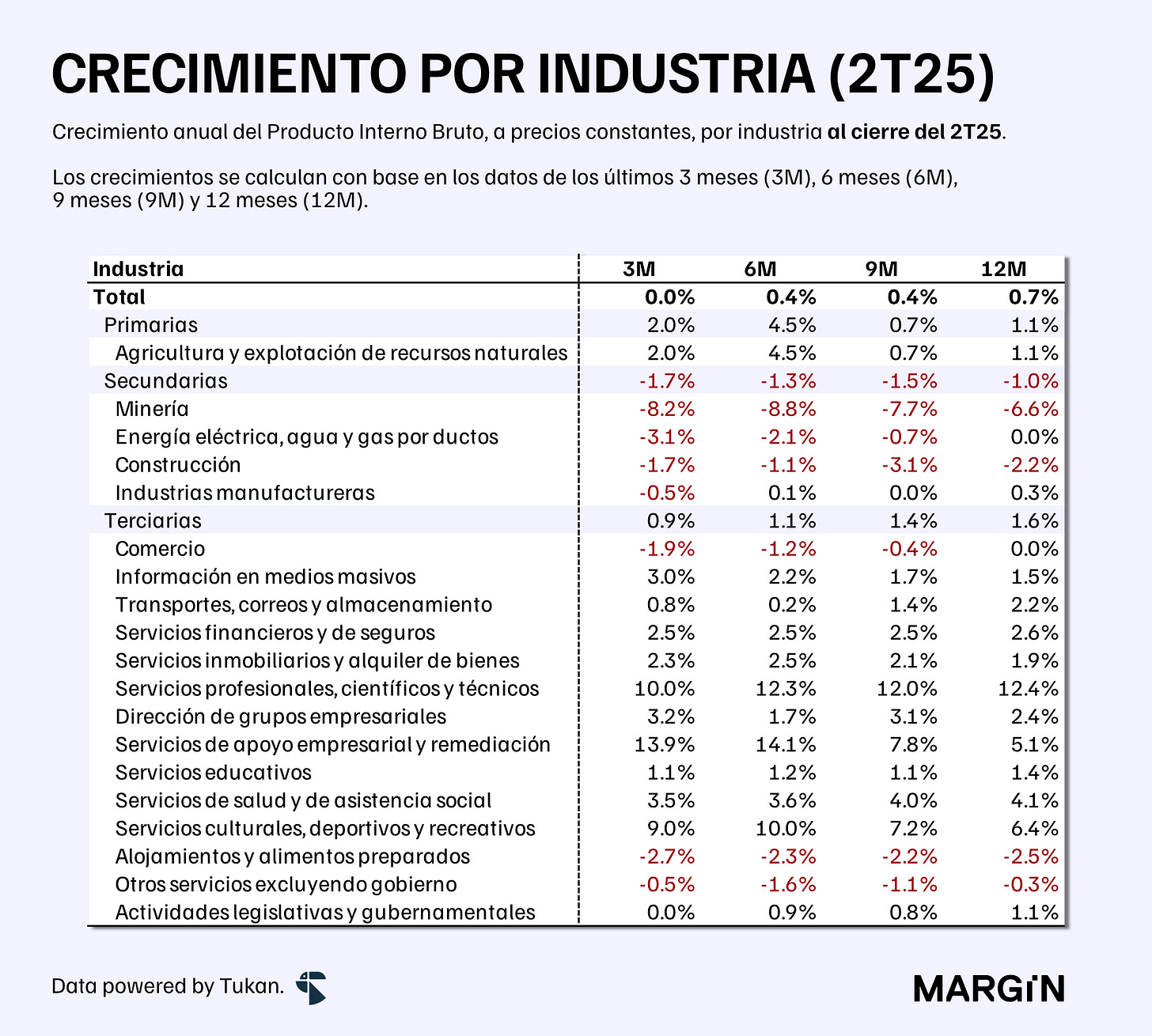 La economía mexicana reportó un mínimo crecimiento del 0.05% durante el segundo trimestre del año, según datos del INEGI.1