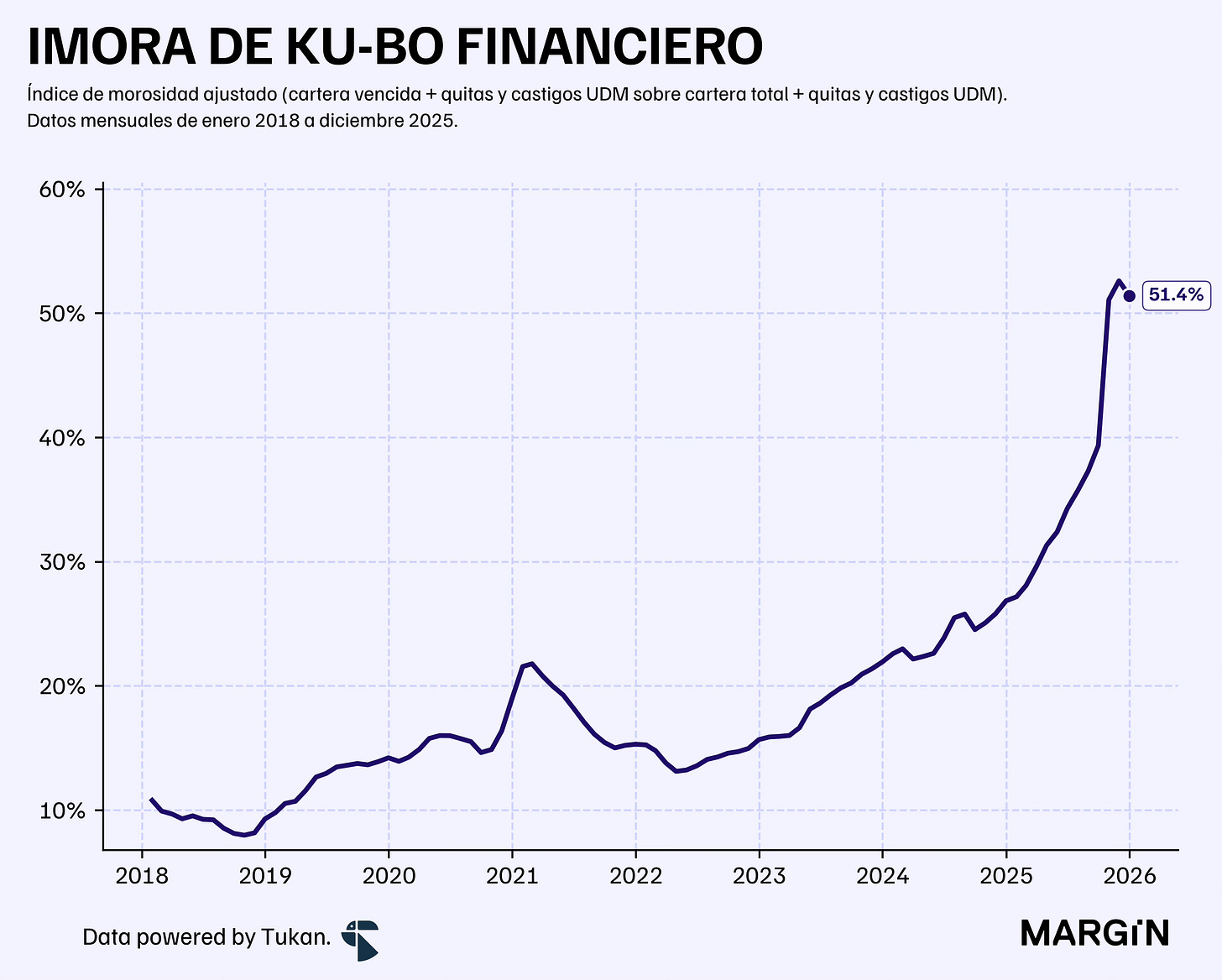 Las quitas y castigos reportadas por la entidad prácticamente se duplicaron y su cartera de crédito se redujo a la mitad. Pasando de $1,400 millones de pesos en diciembre del 2024 a $741 millones al cierre del año pasado.