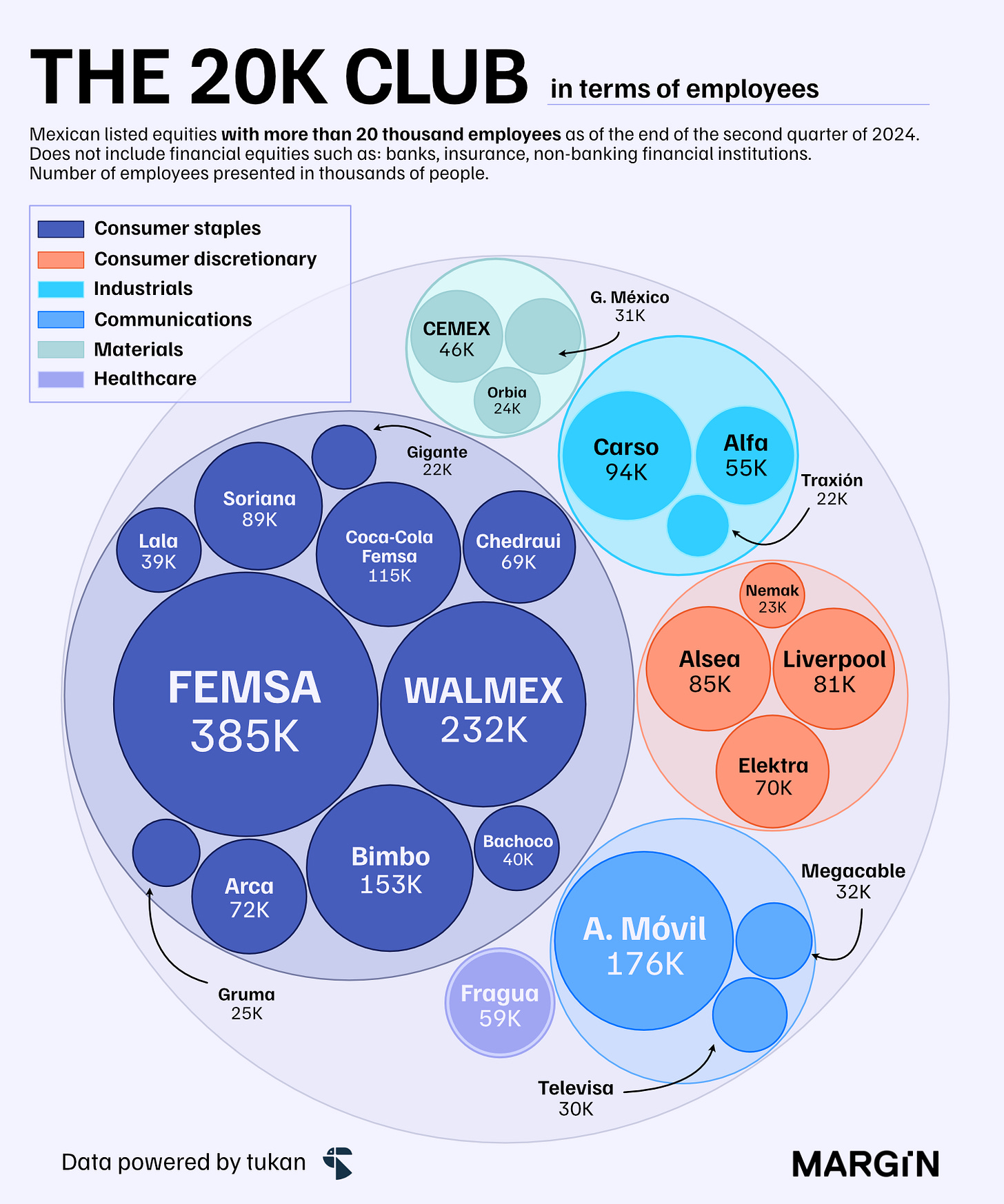 The numbers behind the Mexican listed companies with over 20 thousand employees.
